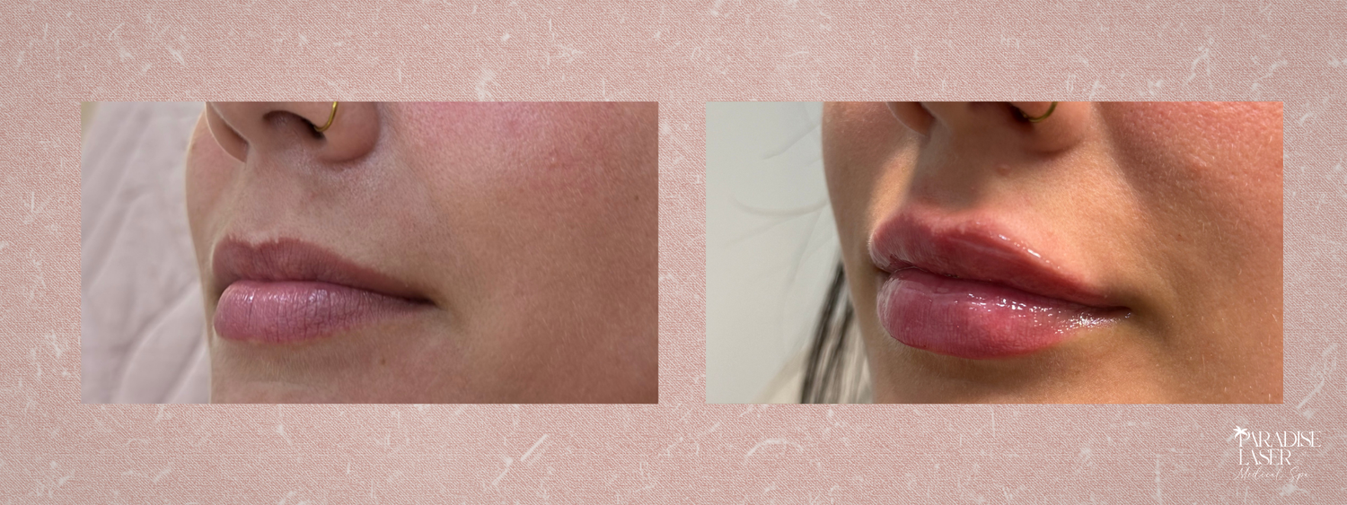 Below you will find real lip filler before and after results from patients treated at Paradise Laser, showcasing subtle hydration, improved lip shape, and elegant volume.